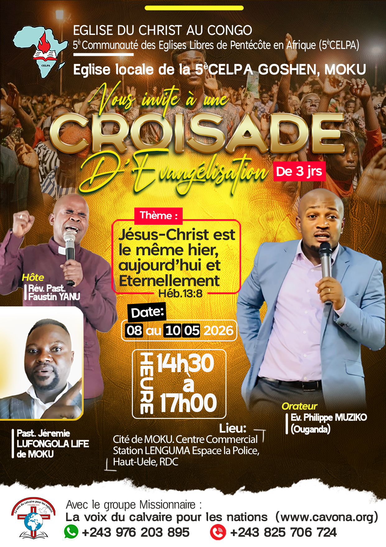 Gospel crusade for 3 days in Moku, Haut Uele province in DR CONGO , from 8 -1Oth May 2026 We invite you to support this program with you...